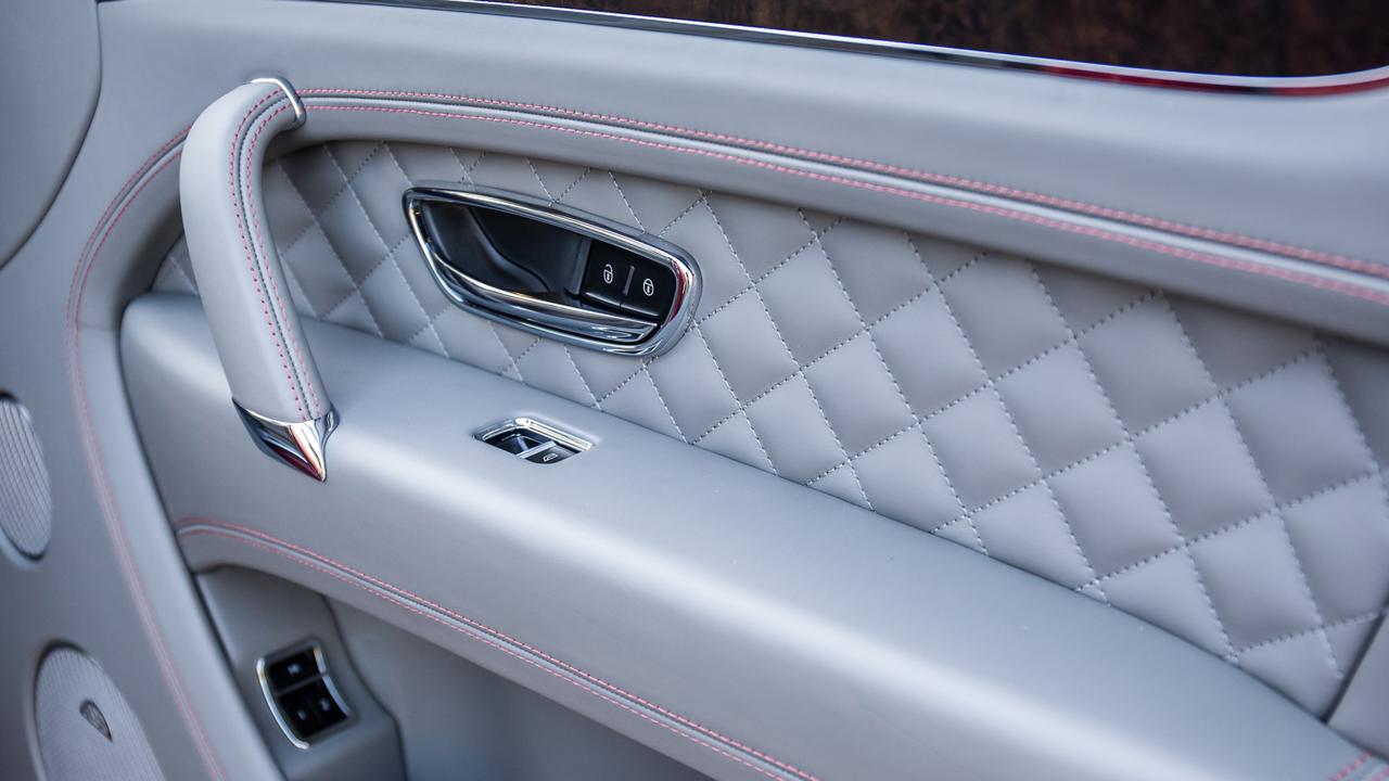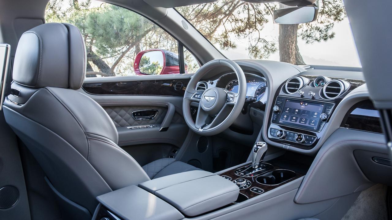 Από το εσωτερικό, η Bentayga καταφέρνει να κάνει πιο ό, τι άλλο μοιάζει με ένα Morris Marina '74. Κάθε απλός επιφάνεια αισθάνεται πάρα πολύ ωραίο να αγγίξει, και το όλο πράγμα μυρίζει σαν το εσωτερικό ενός πραγματικά καλό παπούτσι, αν είστε σε αυτό το είδος του πράγματος. Βρήκα τον εαυτό μου συνεχώς λείανση τα δακτυλικά αποτυπώματα από τα λαμπερά κομμάτια στο όχημα δοκιμής μας (νευρωτική συμπεριφορά η οποία, αν μη τι άλλο, χρησίμευσαν για να μου θυμίζουν από ποια πλευρά του διαμερίσματος του σοφέρ για τους προγόνους μου χαλάζι). δέρμα και ξύλο τεχνίτες Bentley θα παρατάξει καμπίνα Bentayga σας με απόκρυψη σε οποιαδήποτε από τις 15 βασικά χρώματα και να εγκαταστήσετε τα κομμάτια του καπλαμά από ένα από τα επτά είδη ξύλου - όλα βιώσιμης αλιείας, natch. Οι αποφάσεις αυτές διακόσμηση είναι, φυσικά, εκτός από το δύσκολο έργο του να πάρει μια εξωτερική απόχρωση από μια παλέτα που αποτελείται από 17 βασικά χρώματα, 90 χρώματα εκτεταμένης αυτονομίας και περίπου 27.800 δισεκατομμύρια κατά παραγγελία χρώματα. Coquelicot και σμαραγδένια δίχρωμα; Μην πεις τίποτε άλλο.
