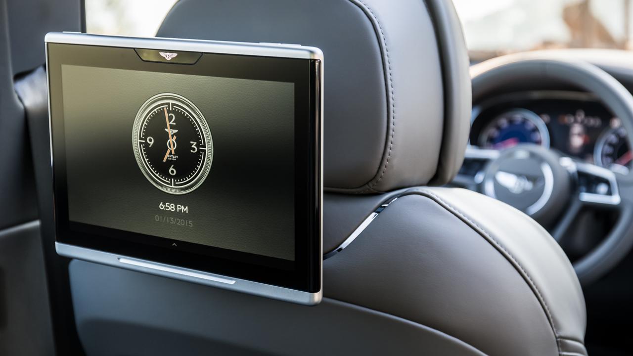 Προαιρετικό ρολόι ταμπλό του Bentayga του φέρει μια παράγραφο του μηρυκασμού. Χειροποίητα με ρυθμό τεσσάρων ετησίως , η Breitling για Bentley Mulliner Tourbillon έρχεται σε λευκό ή ροζ χρυσό και κάθεται σε ένα μικρό divot στην κορυφή της κεντρικής κονσόλας, πίσω από το οποίο είναι ένας μηχανισμός που περιστρέφει περιοδικά το ρολόι για να κρατήσει μηχανική σπλάχνα του τραύματος του. Αυτό το ρολόι προσθέτει το ισοδύναμο των 10 Smart fortwos στην κατώτατη γραμμή του Bentayga του. Αυτό είναι £ 110.000 ($ 160.000 στις ΗΠΑ), ή £ 112.000, αν εσείς παράγοντας στο κόστος ενός μεγάλου, lippy Γερμανικός Ποιμενικός να κάθονται στο μπροστινό κάθισμα.