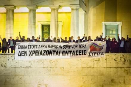 Οι Έλληνες γύρισαν την πλάτη τους στους λαϊκιστές -που καλούσαν σε μαζική διαδήλωση κατά της κυβέρνησης και του Μνημονίου- και προτίμησαν να απολαύσουν το Survivor, αποδεικνύοντας περίτρανα πως είναι γνήσιοι Ευρωπαίοι και δεν επηρεάζονται από τους έξαλλους και ανεύθυνους λαϊκιστές που θέλουν να οδηγήσουν την Ελλάδα στον γκρεμό.