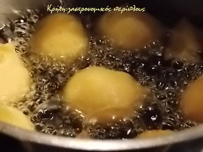 Τα σπρώχνουμε με τρυπητή κουτάλα και όταν χρυσίσουν τα βγάζουμε σε χαρτί κουζίνας.