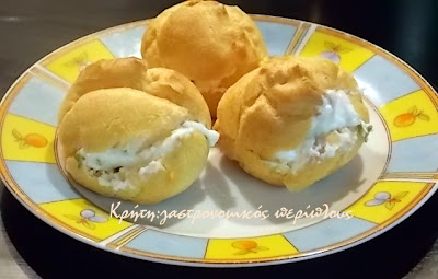 και με αλμυρή γέμιση με κρέμα ξινομυζήθρας και μυρωδικών σαν αλμυρό σνακ ή ορεκτικό.